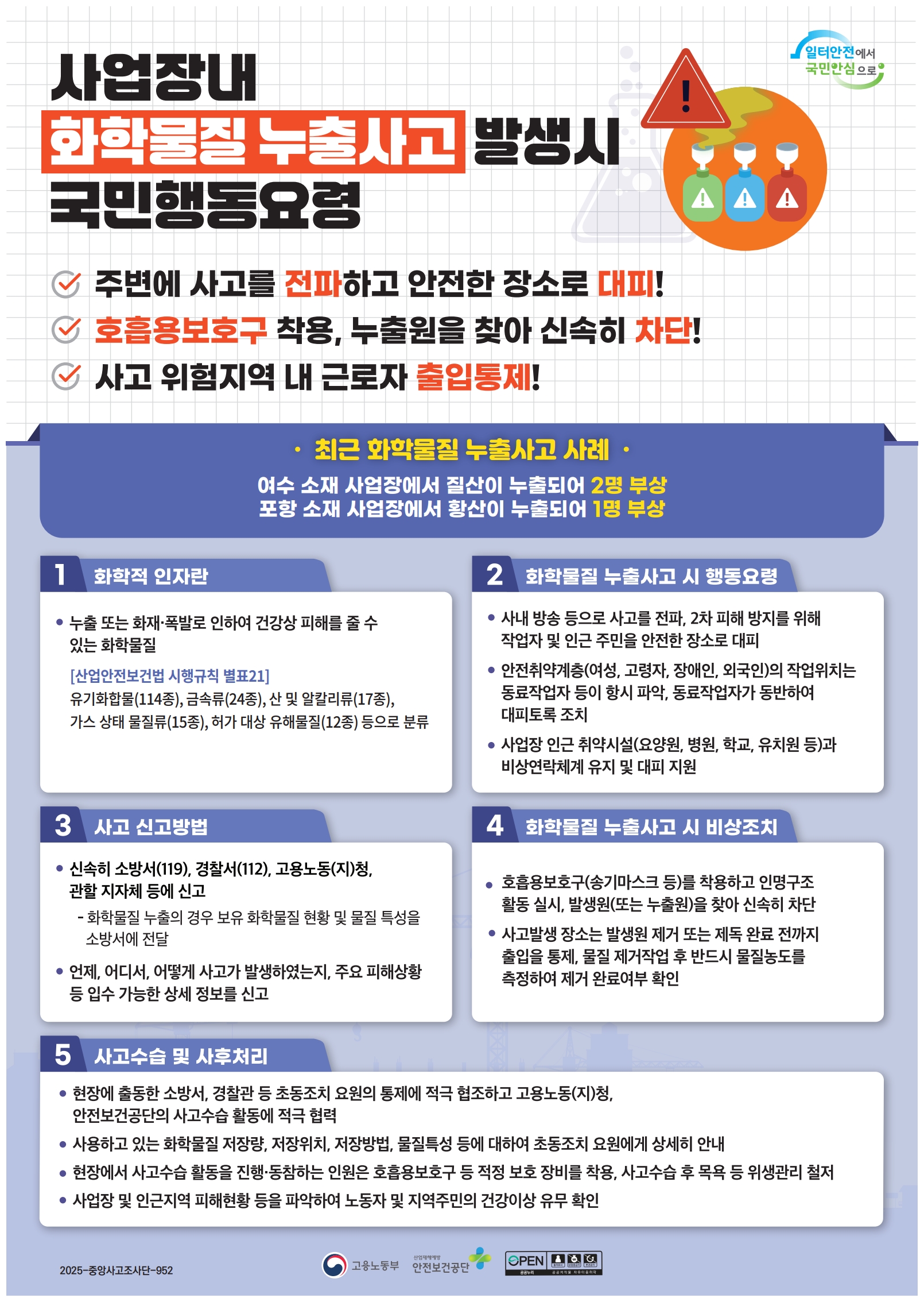 [안전보건공단] 사업장 내 재난발생 시 국민행동요령(5종) OPS
