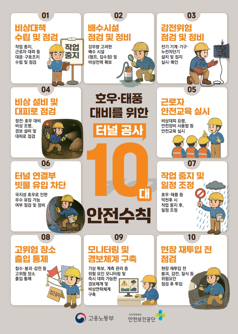 [안전보건공단] 집중호우 대비 터널공사 10대 안전수칙
