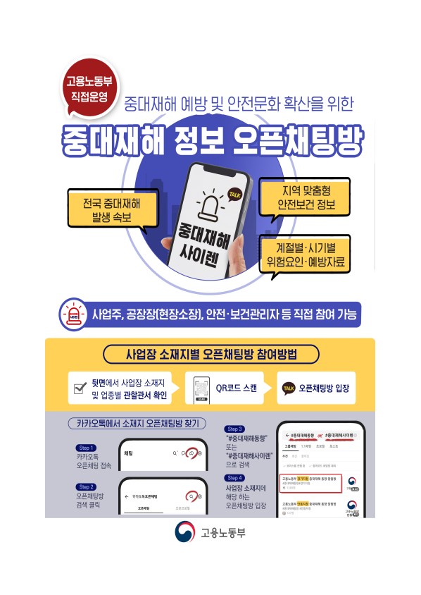 [안전보건공단] 중대재해 사이렌 오픈채팅방 안내