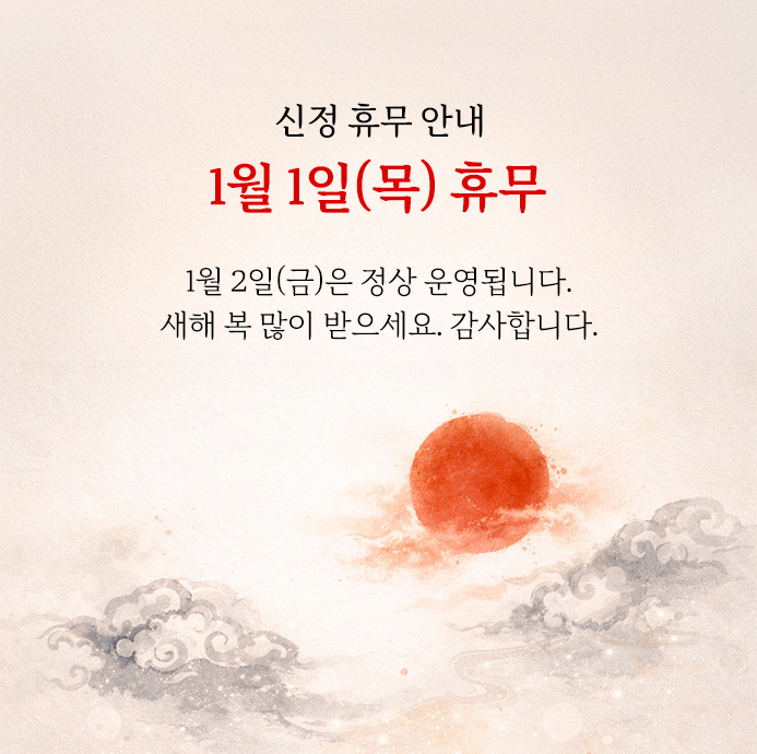 2025년 12월 25일(목) 크리스마스 및 2026년 01월 01일(목) 신정 휴무 안내 드립니다.